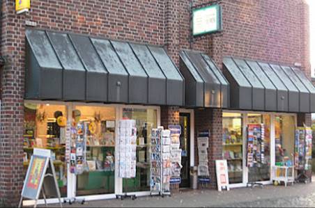 Schreibwarengeschäft, Buchhandlung, Postamt, Stempelgeschäft, Geschäft für Schulbedarf.